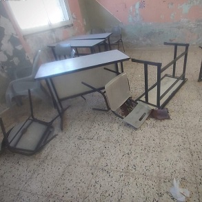 آثار دماء أثناء اقتحام قوات الاحتلال أحد الصفوف لاعتقال الطالبين