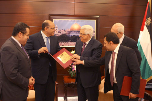 الرئيس يسلم سفير مصر وثيقة تسجيل أرض لبناء مقر لسفارة بلاده برام الله