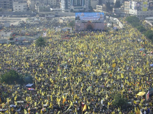 تدفق مئات آلاف المواطنين من كافة مدن محافظات قطاع غزة، منذ فجر اليوم الجمعة، إلى ساحة السرايا في مدينة غزة، للمشاركة في المهرجان المركزي إحياء للذكرى الثامنة والأربعين لانطلاقة الثورة الفلسطينية المعاصرة.