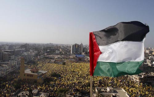 وقال عضو المكتب السياسي لحزب الشعب الفلسطيني وليد العوض 'إن خروج شعبنا اليوم في قطاع غزة موحدا، بمشاركة أطيافه السياسية، وفي ظل توافق وطني عارم، جاء ليؤكد أن الشعب الفلسطيني موحد بالضفة الغربية وقطاع غزة، والقدس، والشتات، ويلتقي حول هدف واحد يتمثل بإقامة الدولة الفلسطينية وعاصمتها القدس، وعودة اللاجئين الفلسطينيين لديارهم، ومن أجل تحقيق هذا الهدف تلتقي كل الأطراف والتوجهات السياسية'.