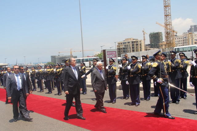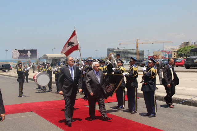 وكان في استقبال الرئيس عباس والوفد المرافق له لدى وصوله إلى ساحة الشهداء وزير العمل في حكومة تصريف الأعمال سليم جريصاتي.