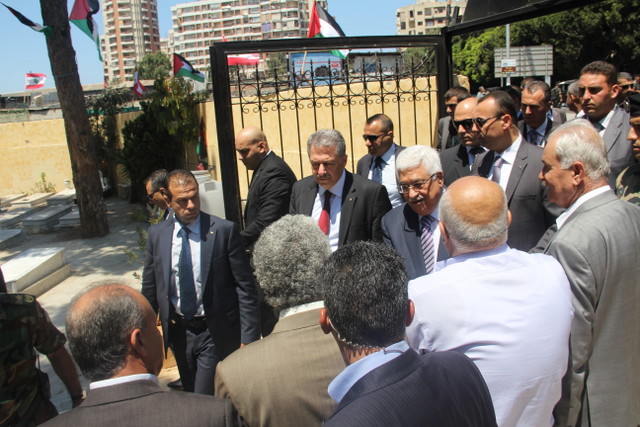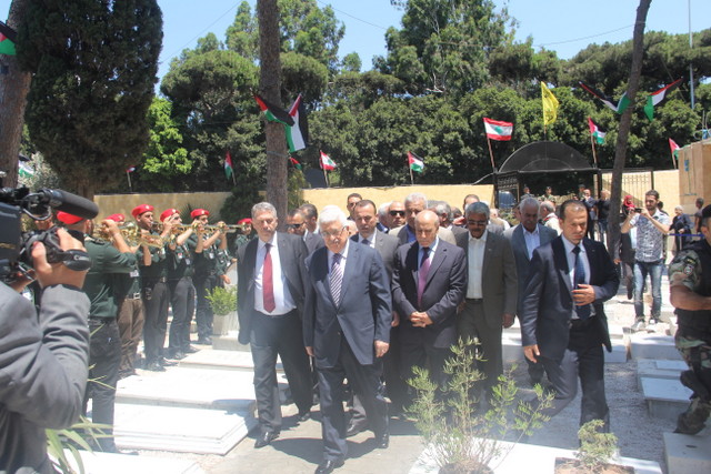 وكان في استقبال الرئيس عباس والوفد المرافق له لدى وصوله إلى مقبرة الشهداء، ممثلون عن فصائل منظمة التحرير الفلسطينية، وعدد من ذوي الشهداء، وشخصيات لبنانية عاصرت الثورة.
