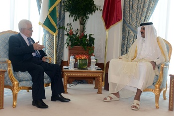- عقد رئيس دولة فلسطين محمود عباس في العاصمة القطرية الدوحة اليوم الجمعة، جلسة مباحثات مع أمير دولة قطر الشيخ تميم بن حمد آل ثاني، بحضور رئيس المكتب السياسي لحركة حماس خالد مشعل.