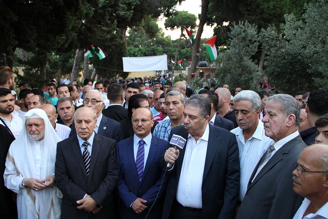 ومن هنا اناشد اهلنا واذكرهم ان لا ننسى ما حصل في تل الزعتر وما بعد تل الزعتر وما حصل في نهر البارد وما حصل ما بعد نهر البارد وما حصل في صبرا وشاتيلا وما حصل بعد صبرا وشاتيلا وما حصل في اليرموك وما بعد اليرموك في كل المخيمات من هنا نقول ونحذر من المؤامرة الكبرى الا وهي التهجير نعم المؤامرة هي التهجير.