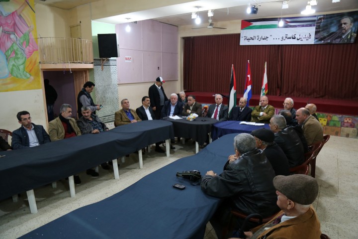 لقاؤنا اليوم في هذا المخيم لتكريم الزعيم الثوري الاممي كاسترو نعتبره تكريم للشعب الفلسطيني الذي لطالما وقف الى جانبها ودعمها وحملها والشعب الكوبي والقيادة الكوبية الى كل المحافل الدولية ليقول ان هناك قضية وشعب وثورة، لهذا على كل العالم واحراره ان يقف الى جانب الشعب الفلسطيني في مواجهة الكيان الصهيوني الغاصب ، نحن لدينا اليوم كلمة واحدة ان الادارة الامريكية التي تراجعت وذهبت باتجاه ترميم علاقتها مع كوبا لتعترف بخطأ تاريخي استمر لعقود طويلة، ان هذا التراجع لم يأتِ من عبث وهو بفضل الصمود والارادة الثورية للشعب الكوبي وللقيادة الكوبية وعلى راسها الزعيم كاسترو. هذه الامبريالية الامريكية لا يمكن ان تتراجع الا اذا وجدت ان هناك شعوب صامدة متمسكة ثابتة راسخة تقودها قيادات تحرص كل الحرص على التمسك بثوابت شعوبها وثوراتها ولنا في الثورة الكوبية كشعب فلسطيني القدوة الحسنة والبوصلة باتجاه كيف نرغم الكيان الصهيوني للاعتراف بانه اغتصب ارض فلسطين ولا مكان لها على هذه الارض مهما امتد الصراع بين الشعب الفلسطيني.