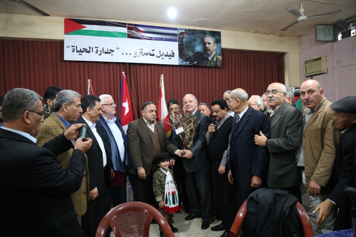 وفاءاً وتقديراً الى كوبا الثورة وقائدها الأممي فيديل كاسترولاستحقاقه" جدارة الحياة"، نظّمت جمعية الصداقة الفلسطينية- الكوبية وفصائل الثورة الفلسطينية في لبنان لقاءاً تضامنياً في المركز العربي الفسطيني في مخيم برج البراجنة، مساء الخميس 14/1/2014 حضر اللقاء امين سر فصائل منظمة التحرير الفلسطينية وحركة فتح في لبنان فتحي ابو العردات، امين سر تحالف القوى الفلسطينية وممثل الجبهة الشعبية- القيادة العامة في لبنان ابو عماد رامز، ممثل سفارة دولة فلسطين في لبنان خالد عبادي، رئيس جمعية الصداقة اللبنانية الكوبية موريس نهرا، رئيس جمعية الصداقة الفلسطينية الكوبية صلاح صلاح، ممثلو الاحزاب والقوى الوطنية اللبنانية، ممثلو فصائل منظمة التحرير الفلسطينية وتحالف القوى الفلسطينية، ممثلو اللجان الشعبية الفلسطينية وقوى الامن الوطني وحشد من الخريجين الفلسطينيين من جامعات ومعاهد كوبا.