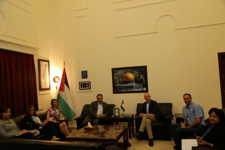 استقبل سفير دولة فلسطين لدى الجمهورية اللبنانية اشرف دبور، اليوم الثلاثاء، نائب ممثل منظمة اليونيسيف السيد لوشيانو كالاستيني، يرافقه وفد من اليونيسيف ضم السيدة مارتا بيتنغا مسؤولة الملف الفلسطيني في اليونيسف والسيد نزيه يعقوب منسق البرنامج الفلسطيني في اليونيسف بحضور السيدة امنة جبريل مسؤول اتحاد المرأة الفلسطينية في لبنان.