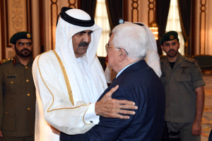 ورافق الرئيس أمين سر اللجنة التنفيذية لمنظمة التحرير الفلسطينية صائب عريقات، وسفير دولة فلسطين في قطر منير غنام.