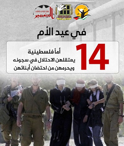 مؤسسات الأسرى: 14 أما يعتقلهن الاحتلال في سجونه ويحرمهن من احتضان أبنائهن