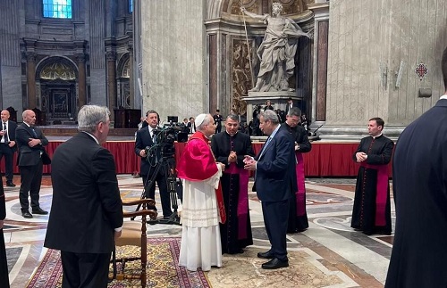 الفاتيكان 18-5-2025 وفا- شارك عضو اللجنة التنفيذية لمنظمة التحرير، رئيس اللجنة الرئاسية العليا لشؤون الكنائس رمزي خوري، اليوم الأحد، في مراسم تنصيب البابا لاون الرابع عشر، ممثلا عن الرئيس محمود عباس.