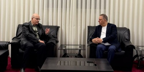 التقى سفير دولة فلسطين لدى الجمهورية اللبنانية اشرف دبور الامين العام للجبهة الديمقراطية لتحرير فلسطين فهد سليمان ونقاش لاوضاع المخيمات الفلسطينية في لبنان.