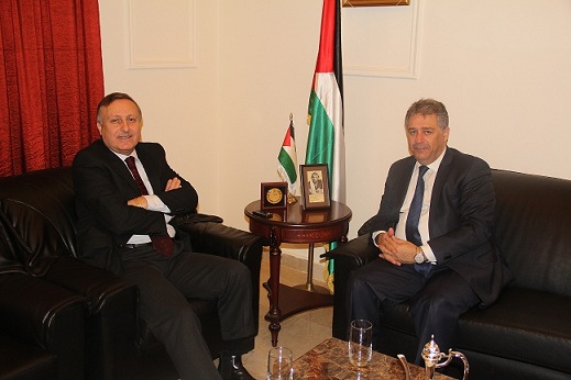 إستقبل سفير دوله فلسطين في لبنان اشرف دبور، اليوم الثلاثاء، سعادة السفير نبيل مصاروه، سفير المملكة الأردنية الهاشمية في لبنان في مقر سفارة دولة فلسطين.