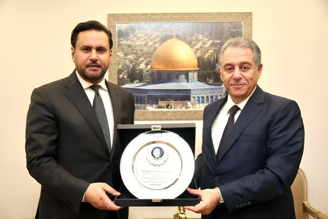 استقبل سفير دولة فلسطين لدى الجمهورية اللبنانية اشرف دبور القائم بأعمال سفارة دولة الكويت في لبنان الوزير المفوض عبدالله سليمان الشاهين لمناسبة انتهاء مهام عمله في لبنان.