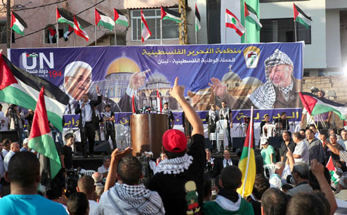 أقامت الحملة الوطنية لدعم التوجه إلى الأمم المتحدة اليوم الجمعة، مهرجاناً خطابياً وفنياً في مخيم مارالياس قرب العاصمة اللبنانية بيروت، دعما لسياسة الرئيس محمود عباس.